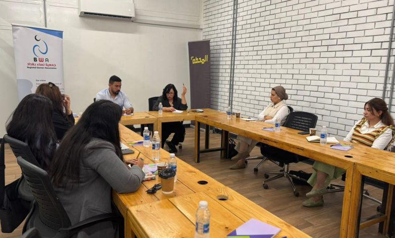 On October 20, 2025, the President of Baghdad Women Association held her regular meeting with the Baghdad Office team, attended by project managers, the monitoring and evaluation officer, and representatives from the finance and logistics departments.